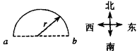 4、选择题 如图所示,某质点沿半径为r的半圆弧由b点运动到a点,则它通过的位移和路程分别是