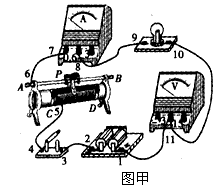 如图甲所示的电路中,1至11为连接点的标号。在开关闭合后,发现小灯泡不亮,电压表和电流表均无示 数。现用多用电表检查电路故障。