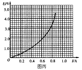 (4)图丙是某实验小组的同学根椐实验数据绘制而成的小灯泡的U-I特性图线。 随后他们将该小灯泡直接串接在电动势E=4.5 V,内阻r=1.5 Ω的直流电源上,则该小灯泡通电发光时的电功率约为_______W。