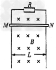 2、计算题  如图所示,MN为裸金属杆,在重力的作用下,贴着竖直平面内的光滑金属长直导轨下滑,导轨的间距L=10cm,导轨的上端接有R=0.5Ω的电阻,导轨和金属杆的电阻不计,整个装置处于B=0.5T的水平匀强磁场中,当杆稳定匀速下落时,每秒有0.02J的重力势能转化为电能,则这时MN杆的下落速度v的大小等于多少?