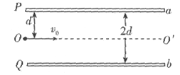 3、选择题 如图所示,P、Q为相距较近的一对平行金属板,间距为2d,OO′为两板间的中线。一束相同的带电粒子,以初速度