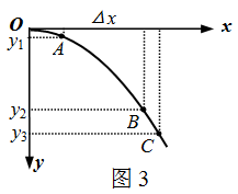 (3)图3是某同学根据实验画出的平抛小球的运动轨迹,O为平抛起点,在轨迹上任取三点A、B、C,测得A、B两点水平距离Δx为40.0cm,则平抛小球的初速度v0为______m/s,若C点的竖直坐标y3为60.0cm,则小球在C点的速度为vC=______m/s(结果保留两位有效数字,g取10m/s2)。