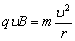 粒子在磁场中运动时有:qvB=