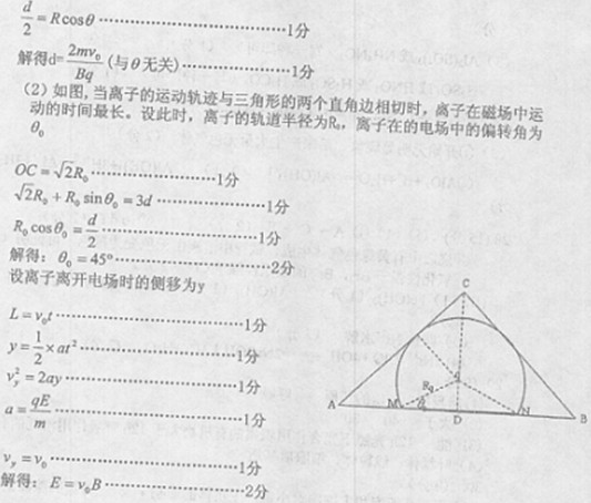 (2)电子在磁场中做匀速圆周运动,设圆运动半径为 R,在磁场中运动轨迹如图,由几何关系?③