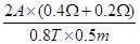 则安培力的大小为F安=0.8T×0.5m×2A=0.8N,摩擦力的大小为(6N-0.8N)×0.2=1.04N,