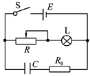 3、选择题  在如图所示的电路中,电源电动势为E,内电阻为r,C为电容器,R0为定值电阻,R为滑动变阻器. 开关闭合后,灯泡L能正常发光.当滑动变阻器的滑片向右移动时,下列判断正确的是(  )