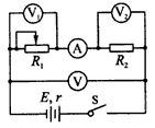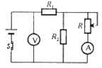 2、选择题  在如图所示的电路中,电池的电动势为E,内电阻为r,R1、R2为 两个阻值固定的电阻,A为内阻可忽略的电流表,V为内阻很大的电压表,当可变电阻R的滑片向下移动时(?)