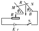 3、计算题 如图所示,两平行光滑倾斜导轨相距为20cm,倾角θ=45°,金属棒MN的质量为10g,电阻R=8Ω,匀强磁场的磁感应强度B方向竖直向下,大小为0.8T,电源电动势为10V,内阻r=1Ω,当电键S闭合时,MN处于平衡态,求变阻器R的取值为多少?(g取10m/s2)