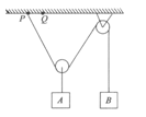 3、选择题  如图所示,由物体A和B组成的系统处于静止状态.A、B的质量分别为mA和mB,且mA>mB.滑轮的质量和一切摩擦可不计。使悬绳的悬点由P点向右移动一小段距离到Q点,系统再次达到静止状态。当移动悬点后系统再次平衡时,B物体的位置(?)