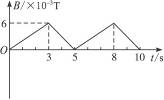 1、选择题 一个边长为6 cm的正方形金属线框置于匀强磁场中,线框平面与磁场垂直,电阻为0.36 Ω.磁感应强度B随时间t的变化关系如图13-4所示,则线框中感应电流的有效值为( )