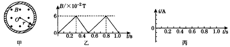 (2)分别求在0-0.3 s和0.3-0.5 s时间内圆环中感应电流的大小,并在图丙中画出圆环中感应电流随时间变化的i-t图象(以线圈中逆时针电流为正,至少画出两个周期)。