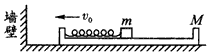 1、计算题 如图所示,轻质弹簧将质量为m的小物块连接在质量为M(M=3m)的光滑框架内,小物块位于框架中心位置时弹簧处于自由长度。现设框架与小物块以共同速度v0沿光滑水平面向左匀速滑动。求: