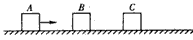 3、计算题 如图所示,三个可视为质点的物块A,B,C,在水平面上排成一条直线,且彼此间隔一定距离。已知mA=mB=10 kg,mC=20 kg,C的左侧水平面光滑,C的右侧水平面粗糙,A,B与粗糙水平面间的动摩擦因数μA=μB=0.4,c与粗糙水平面间动摩擦因数μC=0.2,A具有20 J的初动能向右运动,与静止的B发生碰撞后粘在一起,又与静止的C发生碰撞,最后A,B,C粘成一个整体,求:(取g=10 m/s2)