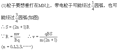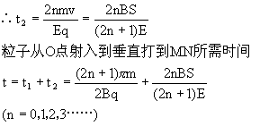 2、简答题 如图所示,x轴下方是磁感强度为B的匀强磁场,上方是场强为E的匀强电场,方向如图,屏MN距y轴为S,今有一质量为m、电量为q的正粒子(不计重力)从坐标原点O沿负y方向射入磁场,若要粒子垂直打在屏MN上,那么: