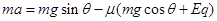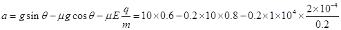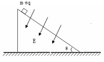 2、计算题 在倾角为θ=370的斜面上,一质量为m=0.2kg,带电量为q=+2×10-4c的小滑块,从距斜面底端L=1.2m处由静止开始下滑,整个装置处于匀强电场中,电场强度为E=104N/C,方向垂直于斜面向下。物块与斜面间的滑动摩擦因素为μ=0.2,求: