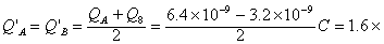 △QB=QB"-QB=1.6×10-9 C -(-3.2×10-9)C =4.8×10-9 C