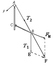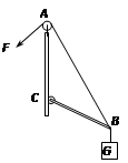 以B点为研究对象,受到三个力分别为重物拉B点拉力T1=G,AB绳子拉力T2=F,及杆CB对B的弹力FN,三力合成如图所示,从图中可以看出