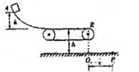 2、选择题 如图所示,光滑弧形轨道F端与水平传送带光滑连接,轨道上A点到传送带的竖直距离和传送带到地面的距离均为h把一物体放在A点由静止释放,若传送带不动,物体滑上传送带后,从右端B水平飞离,落在地面上P点,B、P的水平距离OP为x,若传送带沿顺时针方向转动,传送带速度为v,则下列说法正确的是