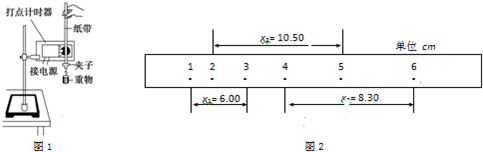 (2)某同学选取了一条纸带进行测量研究.他舍去了这条纸带上前面比较密集的点,对后面间距较大的且相邻的六个点进行了如图2所示的测量.已知当地的重力加速度为g,使用的交变电源周期为T,则要验证机械能守恒的表达式为______(用x1、x2、x3、T、g表示).