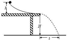 3、实验题 某同学利用如图所示的实验装置验证机械能守恒定律。弧形轨道末端水平,离地面的高度为H。将钢球从轨道的不同高度h处静止释放,钢球的落点距轨道末端的水平距离为s。