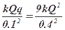 3、计算题 (10分)有两个带电小球,电荷量分别为+Q和+9Q。在真空中相距0.4m。如果引入第三个带电小球,正好使三个小球都处于平衡状态。求第三个小球带的是哪种电荷?应放在什么地方?电荷量是Q的多少倍?