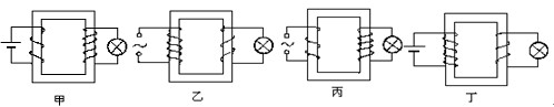 3、选择题 下图中可以将电压升高供给电灯的变压器是( )