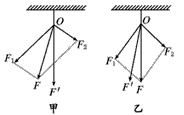 3、实验题 如图所示是甲、乙两位同学在“验证力的平行四边形定则”的实验中所得到的实验结果,若用F表示两个分力F1、F2的合力,用F′表示F1和F2的等效力,则可以判断____________(填“甲”或“乙”)同学的实验结果是符合事实的。