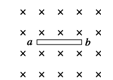 4、选择题 一根导体棒ab放在水平方向的匀强磁场中,导体棒自由落下时,始终保持水平方向且跟磁场方向垂直,如图所示,比较导体棒ab两端的电势的高低,有( )