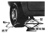 5、选择题 在2008年5·12汶川大地震的救援行动中,千斤顶发挥了很大作用,如图所示是剪式千斤顶,当摇动把手时,螺纹轴就能迫使千斤顶的两臂靠拢,从而将汽车顶起。当车轮刚被手把顶起时汽车对千斤顶的压力为1.0×105 N,此时千斤顶两臂间的夹角为120°,则下列判断正确的是( ? )