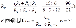 (2)若在C、D间连一个理想电流表,这时电阻R2与R3并联,并联电阻大小
