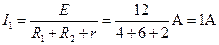 2、计算题 如图所示电路中,电源电动势E=12V,内阻r=2Ω,R1=4Ω,R2=6Ω,R3=3Ω。