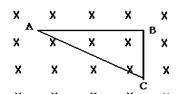 2、选择题 如图所示,直角三角形通电闭合线圈ABC处于匀强磁场中,磁场垂直纸面向里,则线圈所受磁场力的合力(?)