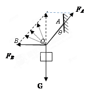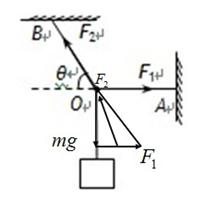 2、选择题 如图所示,重物的质量为m,轻细绳AO和BO的A端、B端是固定的。平衡时AO是水平的,BO与水平方向的夹角为。AO的拉力F1,BO的拉力F2。将作用点B沿水平方向向右缓慢移动, O点位置不动条件下,点B移动过程中(?)