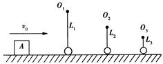 4、简答题 如图所示,滑块A的质量m=0.01kg,与水平地面间的动摩擦因数μ=0.2,用细线悬挂的小球质量均为m=0.01kg,沿x轴排列,A与第1只小球及相邻两小球间距离均为s=2m,线长分别为L1、L2、L3……(图中只画出三只小球,且小球可视为质点),开始时,滑块以速度v0=10m/s沿x轴正方向运动,设滑块与小球碰撞时不损失机械能,碰撞后小球均恰能在竖直平面内完成完整的圆周运动并再次与滑块正碰,重力加速度g=10m/s2.试求: