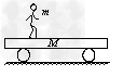 4、选择题 如图,质量为m的人在质量为M的平板车上从左端走到右端,若不计平板车与地面的摩擦,则下列说法不正确的是