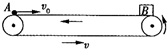 3、简答题 如图所示,长L=34.5m的水平传送带以大小为υ=3m/s的速度沿逆时针方向运动,将一质量为M=2kg的小木盒B轻轻放在传送带右端,B与传送带之间的动摩擦因数μ=0.3,在木盒放上传送带的同时,有一个光滑的质量为m=1kg的小球A自传送带的左端以υ0=15m/s的速度在传送带上向右运动.球与木盒相遇时,木盒与传送带已相对静止,相遇后球立即进入盒中与盒保持相对静止.(取g=10m/s2)求: