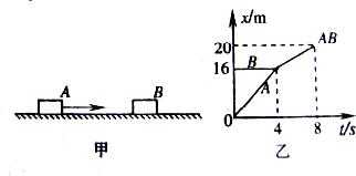 (3)如图甲,光滑水平面上有A、B两物体,已知A的质量为2 kg,A以一定的初速度向右运动,与B发生正碰后粘在一起向右运动,它们位移时间图像如图乙求:
