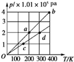 3、选择题 如图是一定质量的理想气体在不同体积时的两条等容线.a、b、c、d表示四个不同的状态,则( )