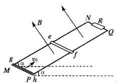 如图所示,两根平行金属导轨MN、PQ相距为d=1.0m,导轨平面与水平面夹角为α=30°,导轨上端跨接一定值电阻R=16Ω,导轨电阻不计,整个装置处于与导轨平面垂直且向上的匀强磁场中,磁感应强度大小为B=1.0T。一根与导轨等宽的金属棒矿垂直MN、PQ静止放置,且与导轨保持良好接触。金属棒质量m=0.1kg、电阻r=0.4Ω,距导轨底端S1=3.75m。另一根与金属棒ef平行放置的绝缘棒gh长度也为d,质量为