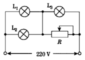 5、填空题 现有L1“110 V 100 W”、L2“110 V 40W”和L3“110 V 25W”的灯泡各一个,另有一个合适阻值的滑动变阻器,把它们连接在220V的电源上,有人设计了一种如图所示的电路。则该电路中的三个灯正常发光时,滑动变阻器R的阻值是_____Ω(保留一位小数),电路消耗电能的功率为_____W。题中的电路设计并不是最节能的,请你设计一个能使灯泡都正常发光且最节能的电路。