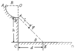 圆形轨道,竖直BC段高h=5m,CD段为水平轨道。一质量为0.1kg的小球由A点从静止开始下滑到B点时速度的大小为2m/s,离开B点后做平抛运动(g=10m/s2),求: