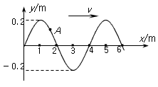 4、填空题  下图为某一以200m/s的速度沿x轴正向传播的机械波在某一时刻的图象,则这列波波源的振动周期为___________s;图中A点此时的振动方向为___________(选填上、下、左、右)。