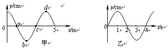 D、若该波沿x轴负方向传播,此时刻d质点位于波峰,位移正向最大,与振动图象t=0质点的状态不同,所以图乙不可能是d质点的振动图线.DC错误.