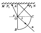 且由几何关系可知,反射光线与AC垂直,所以在AM处产生的亮斑P1为红色,