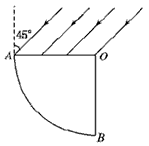 的玻璃柱体,其横截面是圆心角为90°、半径为R的扇形OAB。一束平行光平行于横截面,以45°入射角照射到OA上,OB不透光。若只考虑首次入射到圆弧AB上的光,则AB上有光透出部分的弧长为多长?