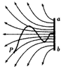 3、选择题 静电除尘器是目前普遍采用的一种高效除尘器。某除尘器模型的收尘板是很长的条形金属板,图中直线ab为该收尘板的横截面。工作时收尘板带正电,其左侧的电场线分布如图所示;粉尘带负电,在电场力作用下向收尘板运动,最后落在收尘板上,若用粗黑曲线表示原来静止于P点的带电粉尘颗粒的运动轨迹,下列4幅图中可能正确的是(忽略重力和空气阻力)