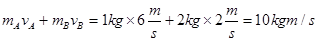 5、选择题  两球A、B在光滑水平面上沿同一直线,同一方向运动,mA="1" kg,mB="2" kg,vA="6" m/s,vB="2" m/s。当A追上B并发生碰撞后,两球A、B速度的可能值是(  )