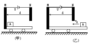 的物块A放置在靠近M板的地方(与M板不接触)如图(甲)所示,释放后,求当物块穿过N板的小孔时刻物块和车速度各是多大?