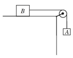 3、填空题 如图所示,不计一切阻力,定滑轮质量忽略不计,A的质量为m,B的质量为3m,两物体由静止开始运动,当B向右移动x时,A的速度大小为___________,绳子的拉力对B做功为___________。