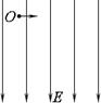 5、选择题 如图所示,有一足够宽的匀强电场,电场强度大小为E,方向竖直向下,在电场中的O点,沿同一水平方向以不同的速率射出若干个带电粒子,它们的质量均为m、带电量均为+q,但速率不等,粒子的重力及相互间的影响不计,若把每个粒子的动能增大到各自初动能3倍的位置分别记为P1、P2、P3、…,则P1、P2、P3、…的连线形状为(? )